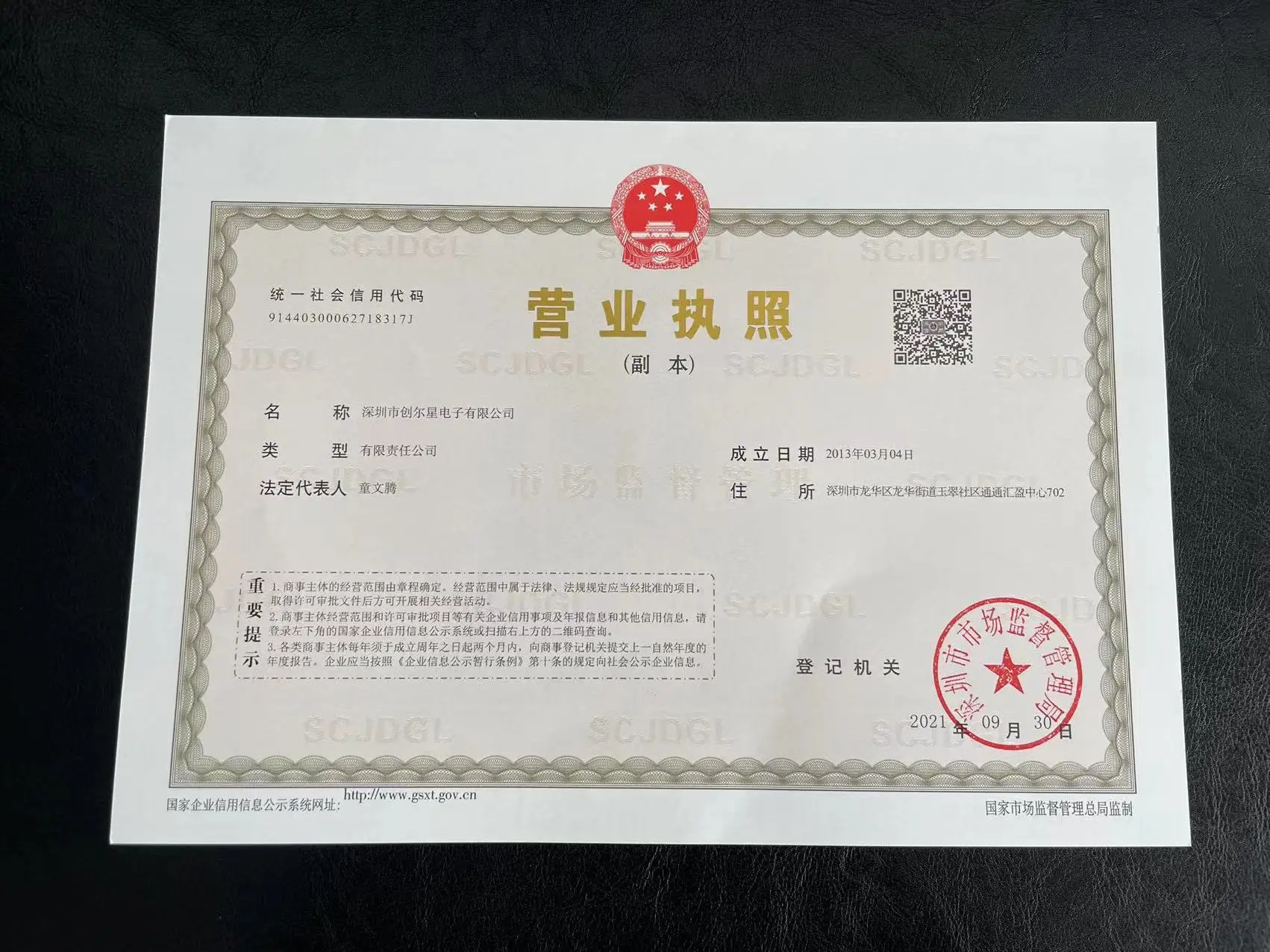 Registered address : 702, Tongtong Huiying Center, Yucui Community, Longhua Street Shenzhen Guangdong China